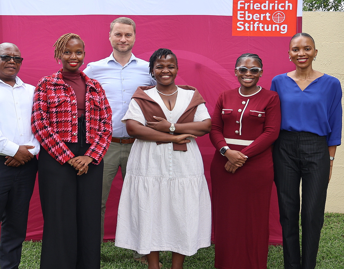 Meet the Team:  From left to right-Mr. Daniel Ncaagae (Admin Assistant), Ms. Tumisang Seabo (Project Officer), Mr. Thilo Schöne (Resident Representative), Ms. Galaletsang Dintsi (Programmes Manager), Ms. Koketso Moyo (Programme Offcier) Ms. Naledi Letsididi (Admin and Finance Officer)